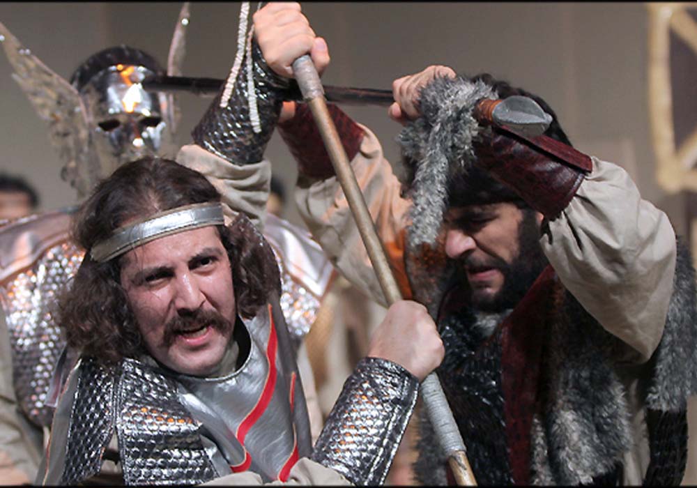 این نمایش که اقتباسی از یکی از متون حماسی کهن ایرانی است با تکنیک‌های روایتگری شرقی و با زبان پیچیده آرکائیک ایران اجرا شد و فاصله‌ی آن با زندگی روزمره چالشی اساسی در کارنامه بازیگری‌ام به حساب می‌آید.